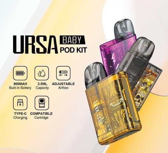 Ursa Baby Pod Kit is built with 800mAh battery with 18W max output power. It comes with visually appealing stylish, and you can observe all the internals in the Ursa Baby Pod Kit. With the design of smart pod detection, Ursa Baby can automatically detect the coil resistance of the pod and ensure the stable output. Ursa Baby Pod Kit is compatible with Ursa Nano Pod of 2.5ml. It features type-c fast charging with smart charging indication.