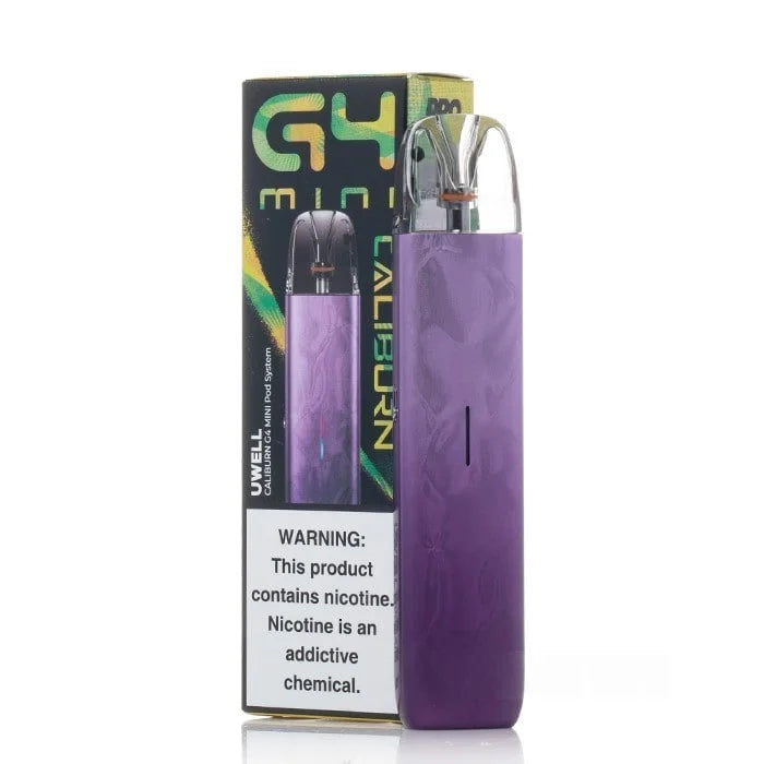 Shop the Uwell Caliburn G4 Mini Pod System, offering an 1100mAh battery, 5-35W range, and a dual airflow system via pod orientation and adjustment slider. Featuring the new Caliburn GPP Pods and cross-compatible with the Caliburn G3 Pods.